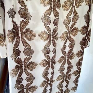 #21597A H&M Women’s Dress Size 12 Batik White Goldish/Brown European Print 100% Viscose Office Career Casual