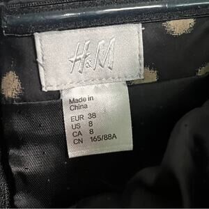 H&M Womens Dress Size 8 Black Tan Gold Polka Dot Pleated Bust Strapless Mini