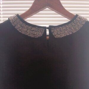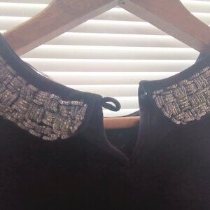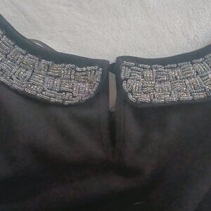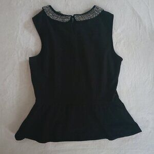 H&M Womens π Fancy Black Sequined Neck Fit And Flare Sleeveless Peplum Top