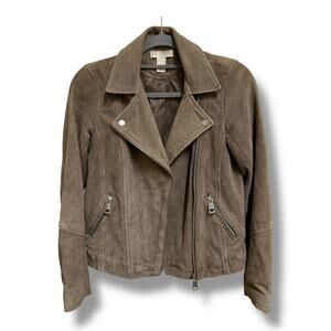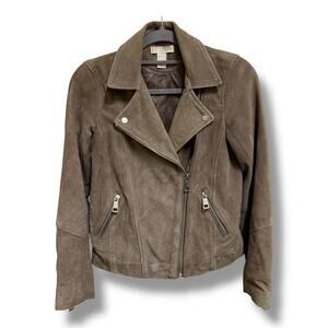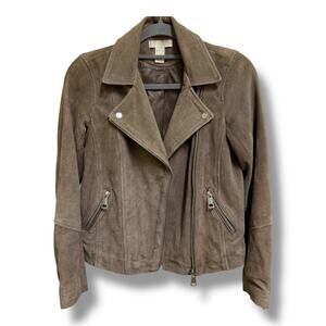 H&M Women's Faux Suede Biker Jacket – Size 2 – Taupe – Edgy & Versatile