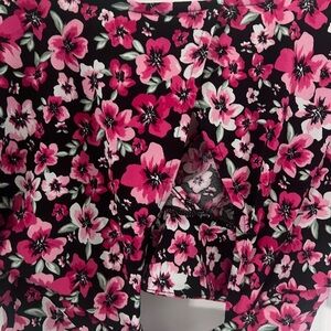 H&M Women's Floral Wrap CropTop - Pink and Black Size Medium