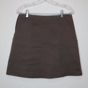 Pre-Owned Condition! Shell: 71% Cotton/27% Polyester/2% Elastane. Lining: 100% Polyester. Lovely Dark Tan Double Front Pocket Fully Lined A-Line Skirt. Spare Button Attached.