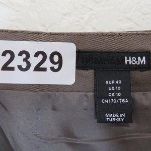 H&M* Women's Fully Lined Half Side Zip Front Pockets A-Line Tan Skirt~ Size 10