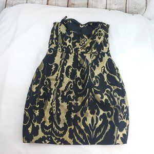 H&M Womens Gold Black Semi Sweetheart Neck Strapless Fully Lined Tube Dress Sz 8