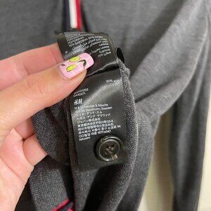 H&M Womens Gray Striped Trim Silk Cotton Button Up Cardigan Sweater Medium. Measurements Shoulder to shoulder: 19" Underarm to underarm: 21" Length: 26" Sleeve: 27" Offers always welcome! Measurements are approximations taken while hanging
