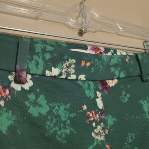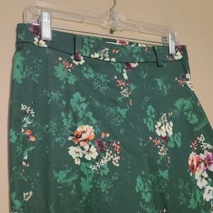 H&M | Women's Green Floral Pull-on Style Straight Ankle Pants (Size 8)