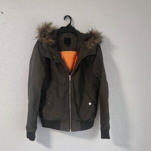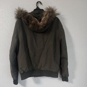 H&M Women's Green Hooded Bomber Jacket with Faux Fur Size Medium