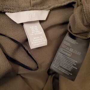 H&M Women’s Solid Khaki Green Dolman Sleeve V-Neck Midi Shift Dress - XS