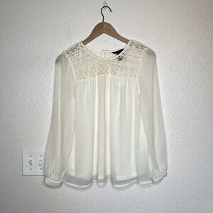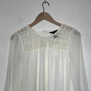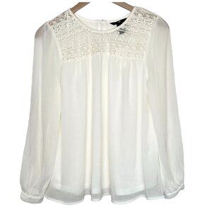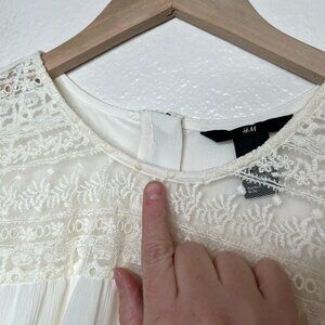 H&M Women's Lace & Chiffon Coquette Blouse Long Sleeve Size 4 Cream White