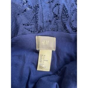 H&M Women’s Lace Dress V Neck Navy Blue Classy Semi Sheer Lined Slim Fit Sz 6