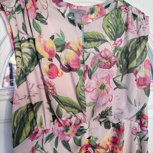 H&M Womens Light Beige Pink Floral Maxi Chiffon Dress, Size: XL, EUC