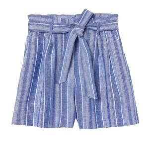 H&M Women's Linen Blend Paperbag Shorts Blue White, Size 12