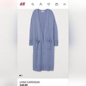 H&M - Womens, Long, Pigeon Blue, Soft Sweater - Size S but it fits more like a M, no buttons, has pockets
