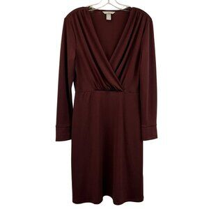 H&M Womens Long Sleeve A-Line Dress V-Neck Knee Length Maroon Size Small
