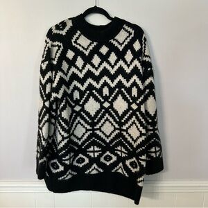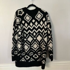 H&M Women’s Long Sleeve Black & Cream Crewneck Wool Blend Aztec Tunic Sz L GUC