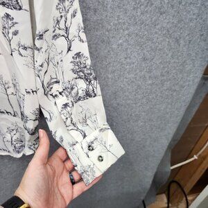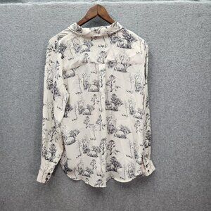H&M Womens Long Sleeve Button-Down Shirt With Nature Print Size L