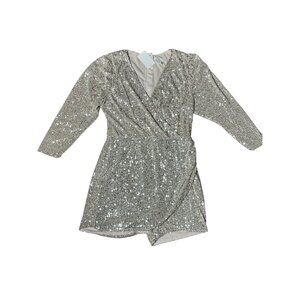 H&M Womens M Gold Sequin Wrap Mini Dress Romper Long Sleeve Holiday Party Chic