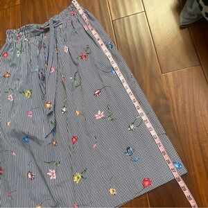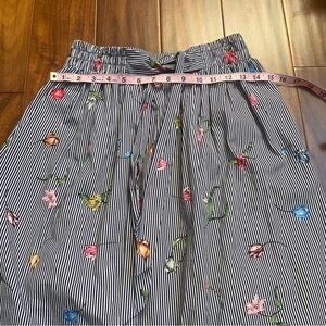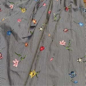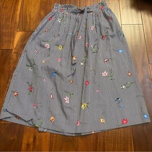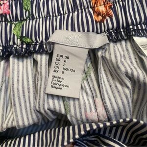 H&M Women's Midi Skirt Navy & White Stripes Floral Front Tie Size 8