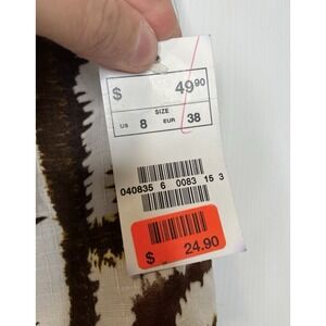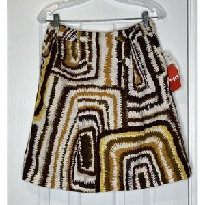H&M Women's Mini Skirt Abstract Print White Brown Yellow 8 New Waist-29" Length-20"