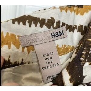 H&M Women's Mini Skirt Abstract Print White Brown Yellow 8 New‎