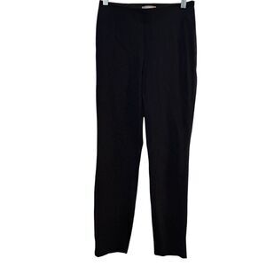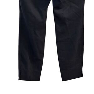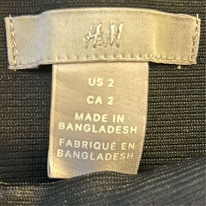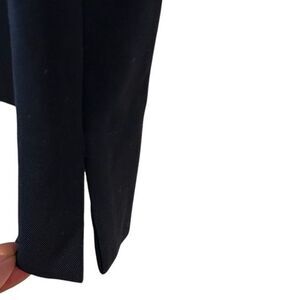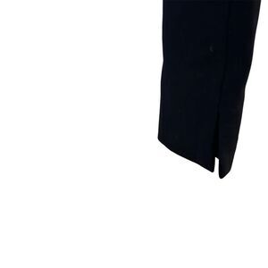 These H&M women's dress pants in size 2 feature a straight leg style with a side zipper and notched hem. Made from a blend of polyester, viscose, and elastane, they offer a regular fit with a mid-rise waist. The solid navy blue color, which appears almost black, makes them suitable for workwear across all seasons. With a 27" inseam and a 24" waist size, these pants are machine washable and manufactured in Bangladesh. They are pre-owned but in excellent condition.