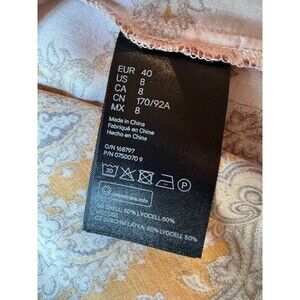 The H&M Women's Orange Sleeveless Tank Top Cami is a stylish and versatile addition to any woman's wardrobe. Made from a blend of viscose and lyocell, this top features a flattering paisley pattern in a vibrant orange color. The sleeveless design and flowy silhouette make it perfect for layering over your favorite bottoms for a trendy and chic look. Available in size 8, this top is a must-have for women looking for a fashionable and comfortable piece to add to their collection.