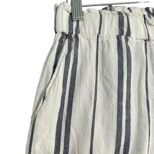 H&M Womens Pants Size 2 Blue White Striped Wide Leg Cropped Linen Blend Coastal Elastic Waist