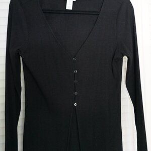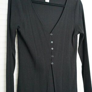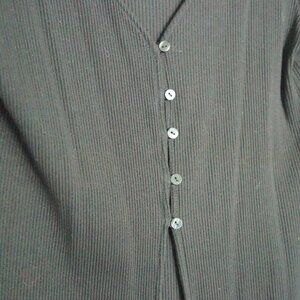 Women's Large Black Button Up Blouse. The sweater does not have buttons from bottom to top, only in the middle