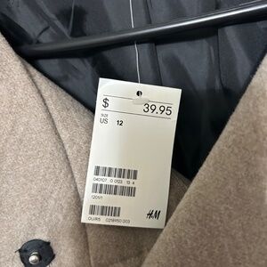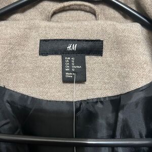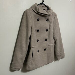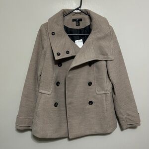 H&M Women's Pea Coat Jacket 12 Taupe Beige Casual Double Breast Button High Neck