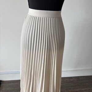 H&M Women’s Pleated Midi Skirt Beige Semi Sheer Size XS Preppy Capsule Neutrals