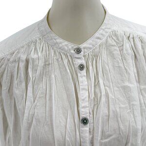 H&M Womens Pleated White Blouse Medium Button-Up Long-Sleeve