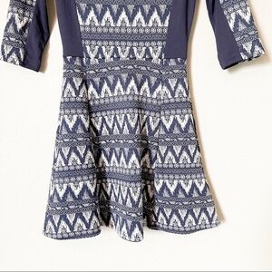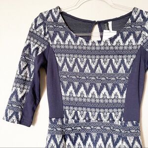 H&M Women's Printed Fit and Flare Mini Dress Navy Blue Keyhole Back 4 NWT