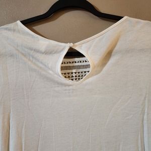 H&M Women's Pullover Slinky Stretch Knit Tee Size S White Keyhole Neck Lace Top