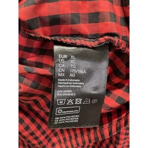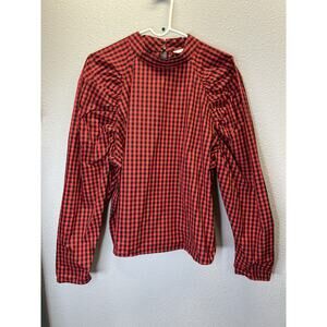 H&M Women’s Red & Black Gingham Check Plaid Big Puff Sleeve Blouse Size XL