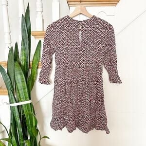 H&M Womens Red Geometric Print 3/4 Sleeve Round Neck Shift Dress