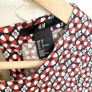 H&M Womens Red Geometric Print 3/4 Sleeve Round Neck Shift Dress Size 2