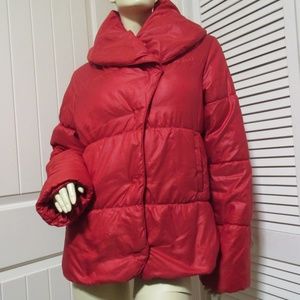H&M womens red puffer jacket coat with long sleeve- quilted or padded oversized jacket - womens winter coats and jackets. Metal snap button closures. Oversized collar. Two outer pockets. One inner pocket with zipper closure. Excellent condition, preowned. Material - BODY/SHELL 83% Polyester 17% Nylon, LINING 100% Polyester, PADDING 100% Polyester. Women's outerwear great as womens winter coats/jackets, winter clothes/clothing. Machine wash warm, tumble dry medium, low iron, or dry clean. Hurry! We only have ONE PIECE of this item!