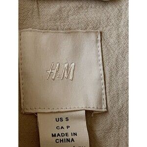 This H&M women's jacket is a versatile piece perfect for any occasion. With a solid beige color and long sleeves, it features a zip and button closure, as well as a tie-waist for a flattering fit. The jacket is made of cotton and has a polyester lining, making it both comfortable and durable.