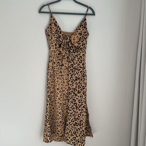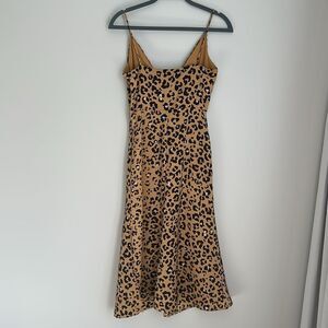 H&M Women’s Satin Leopard Print Sleeveless Slip MIDI Dress with Ties Size 2US