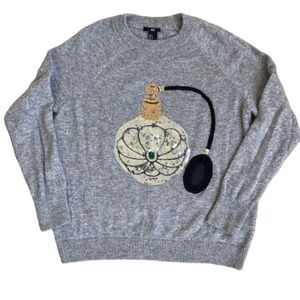 H&M Women’s Sequin Perfume Bottle Gray Crewneck Sweater Alpaca Blend Soft Sz M