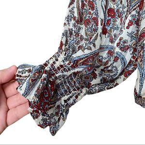 H&M Women’s Sheer Blouse in Paisley Pattern Blue Red White Size Small