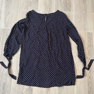 H&M Women’s Shift Navy Blue Patterned Dress With Tie Sleeves Size 10