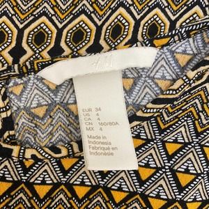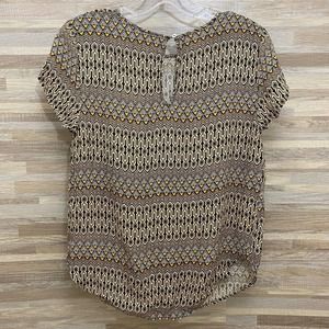 H&M Women's Short Sleeve Gold/Black Keyhole Top Blouse Sz 4