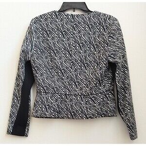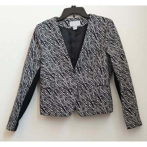 H&M Women's Size 10 Animal Print Zebra Front Snap Cropped Blazer Jacket Long Sleeve
