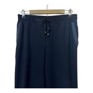 H&M Womens Size 10 Navy Blue Tuxedo Stripe Satin Trim Jogger Pants