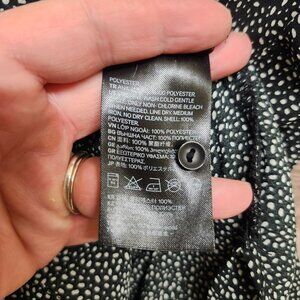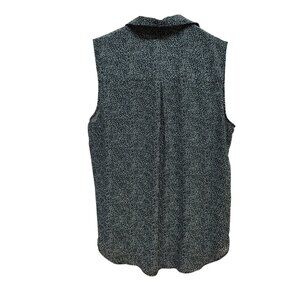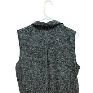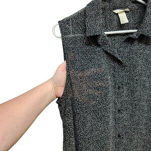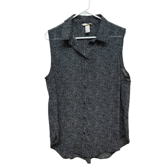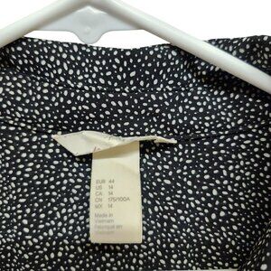 H&M Womens Size 14 Blouse Black White Button Front Collared Curved Hem