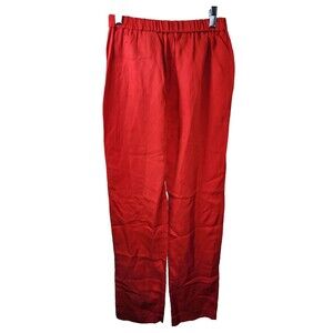 H&M Womens Size 2 Red Linen Blend Trousers Straight Leg Elastic Waist Pockets
