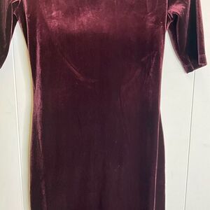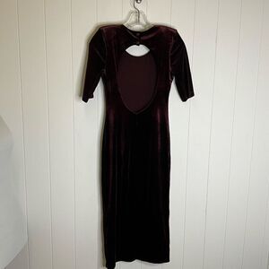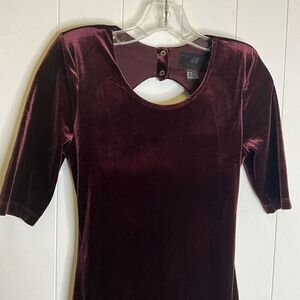 H&M Women’s Size 4 Plum Purple Velvet Midi Dress Stretch Short Sleeve