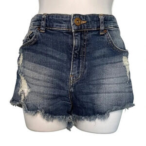 H&M Women's Size 8 Denim Dark Wash Distressed Frayed Jeans Shorts