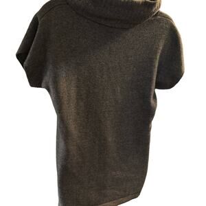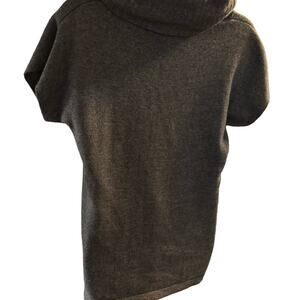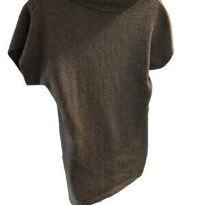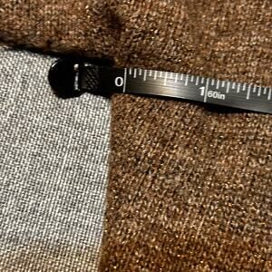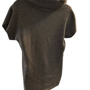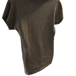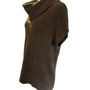 The sweater is tunic length and brown. It has flakes of gold flecks throughout the fabric of the sweater. The cowl neck makes the sweater perfect for fall and winter and may be used for a layering affect. The sweater is without defects and the measurements are in the photos but here as well. The are taken lying flat